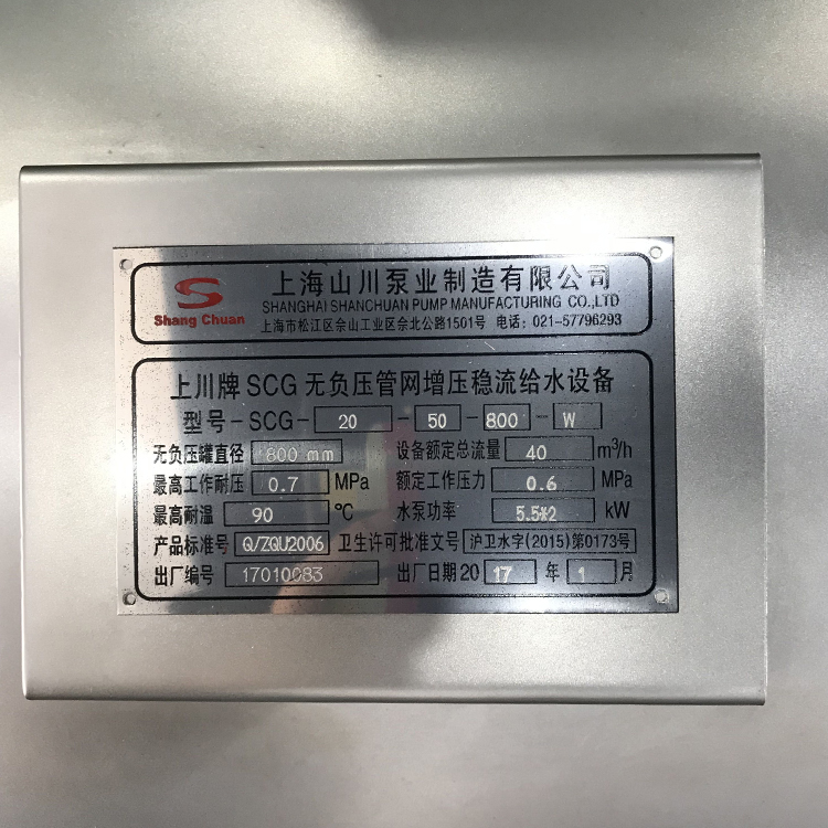 山川泵業銘牌